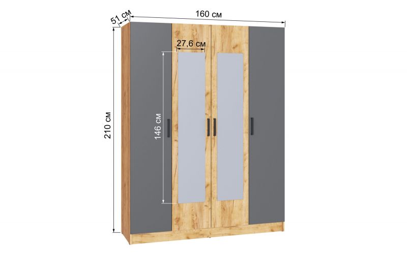 Шкаф 1600 мм Ларс крафт/графит (Микон)