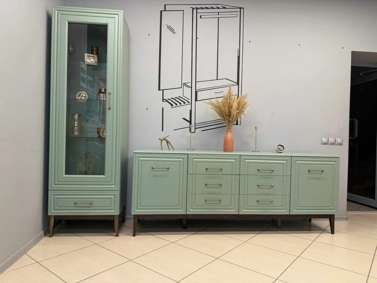 Комод 6 ящиков, 2 двери Гориция зеленый самшит (БМ)